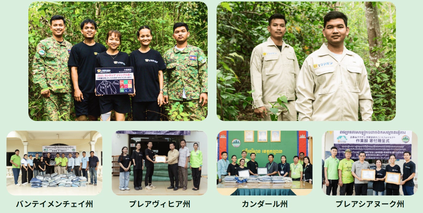 使わなくなった作業服を「廃棄する」のではなく、カンボジア政府環境省と連携し「森林保護に従事するレンジャーへの寄付」や「職業訓練校での制服・作業服としての活用」「職業訓練校の生徒や障がいのあるスタッフの自立支援・雇用創出」につなげる、企業向けのサステナブルパッケージです。