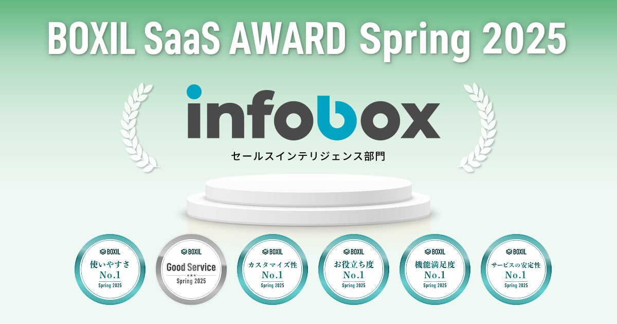 株式会社インフォボックス(本社:東京都千代田区、代表取締役:平沼海統)が提供する営業データプラットフォーム「infobox」は、スマートキャンプ株式会社(以下「スマートキャンプ」)が今最も評価されているSaaS(※1)を表彰する「BOXIL SaaS AWARD 2025」においてBOXILセクション、セールスインテリジェンス部門で1位に選出されました。