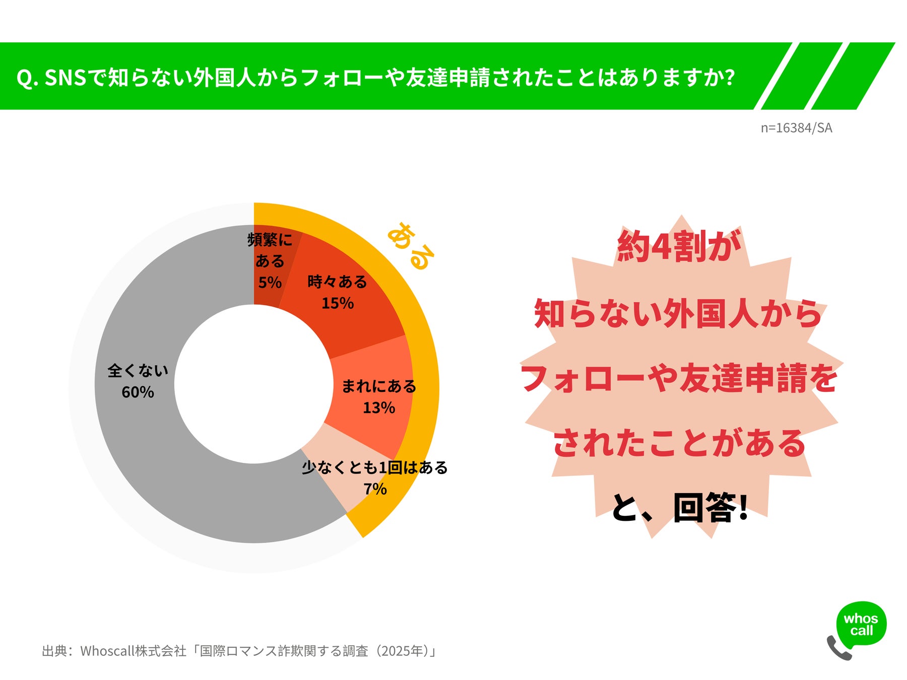 約4割がSNSで知らない外国人からフォローや友達申請されたことがあると回答
