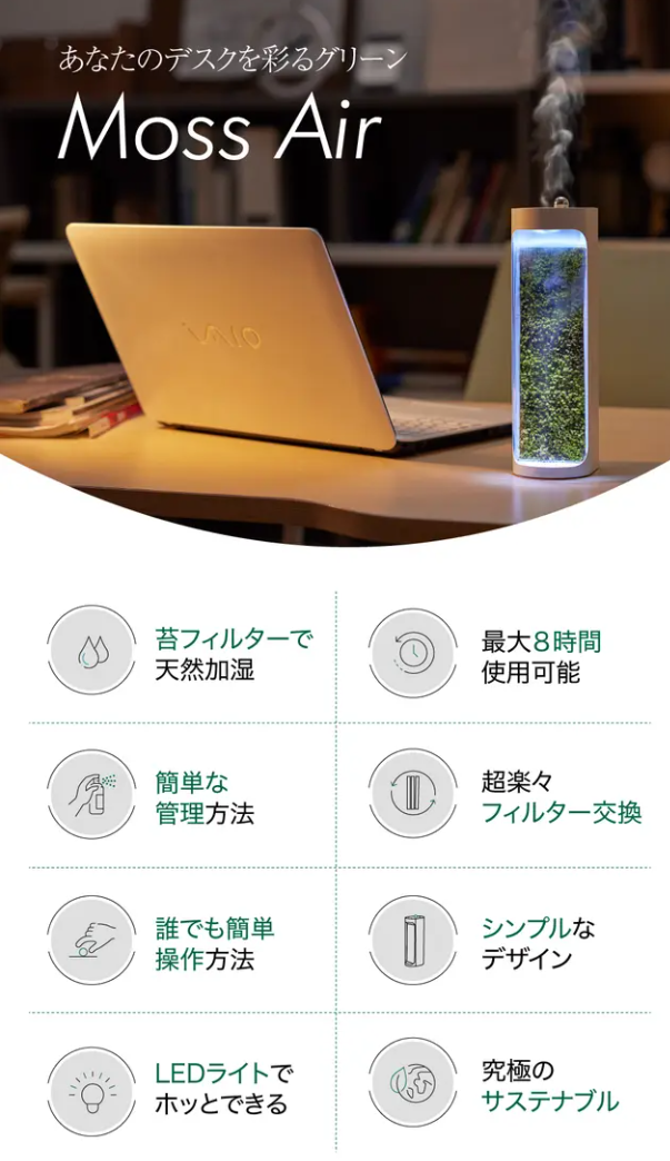 新感覚・新しい癒し・苔の自然の力を利用した加湿器!