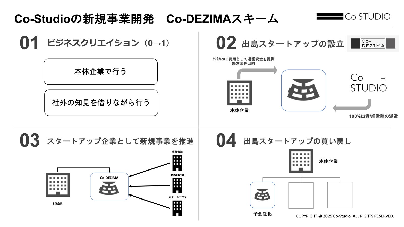 「Co-DEZIMA」は、Co-Studioが独自に構築した出島型事業創出スキームです。