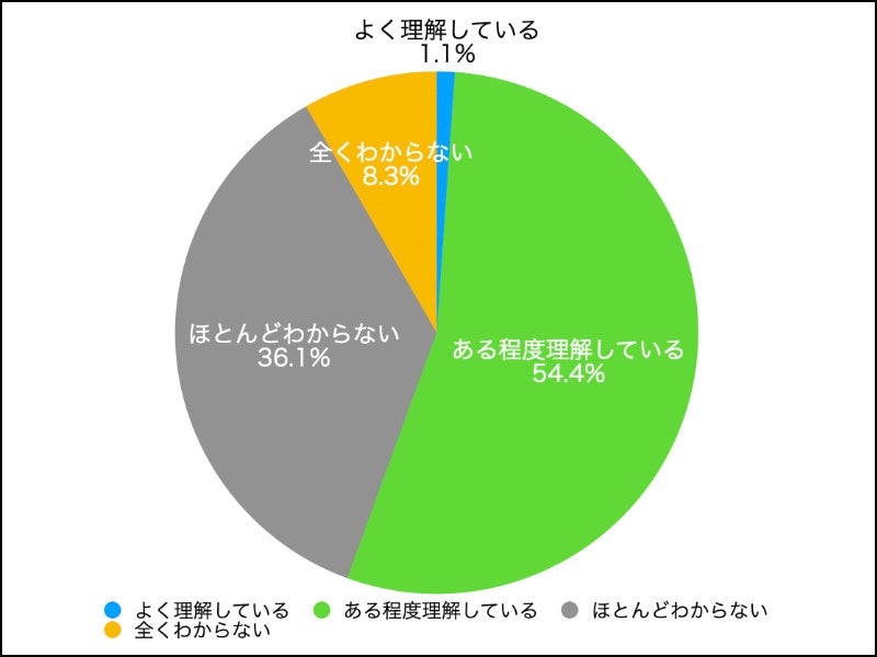 この質問は具体的な内容について理解しているか聞いたわけではなく、「キーワードとして聞いたことあるか?」という質問でしたが、「26%」の人は聞いたことも「ない」という回答でした。
