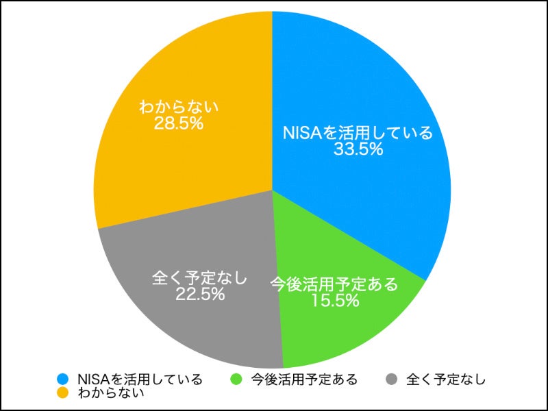 今後、NISAを活用予定ある人も15%となっていて、アンケート回答者の半数近くの人がNISAの活用に前向きであることがわかります。