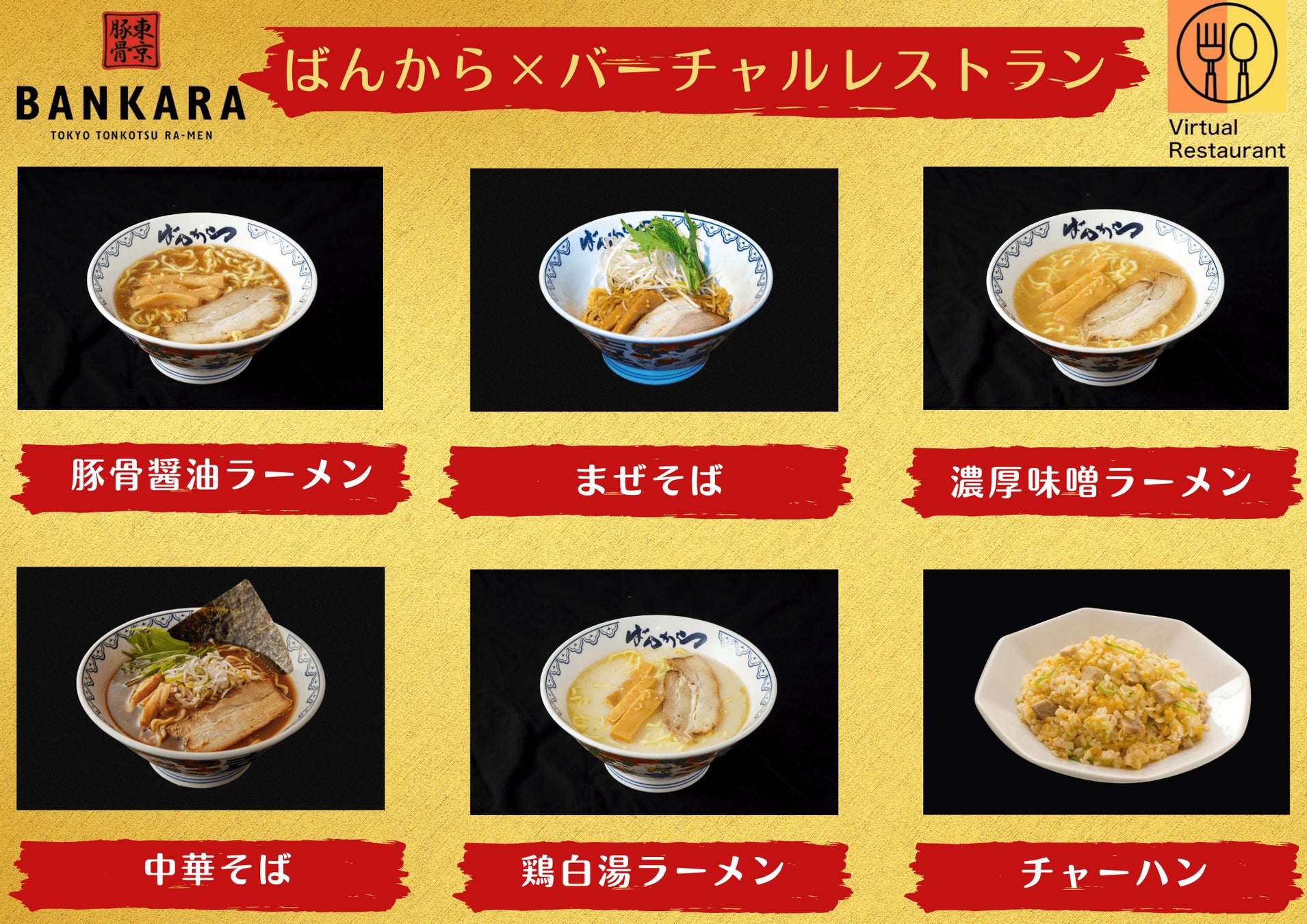 株式会社バーチャルレストラン(本社:東京都中央区、代表取締役社長:牧本天増)は株式会社花研が運営するラーメンチェーン”ばんから”とライセンス契約を締結いたしました。本契約により、”ばんから”がバーチャルレストランブランドとして全国に導入を開始いたします。つきましては、「ばんからを自分の店でやってみたい!」という飲食店を全国から集います。