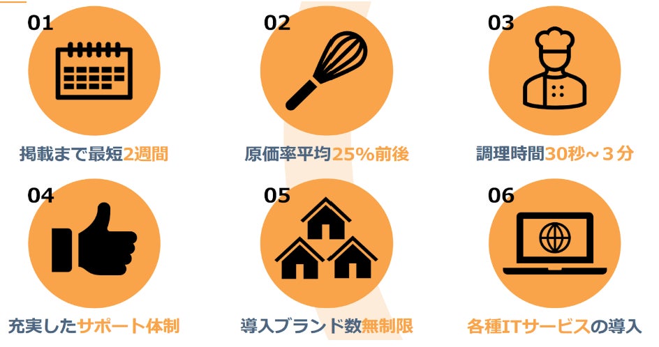 2020年6月にバーチャルレストランに特化したオリジナルブランドのフランチャイズ事業を開始し、都内を中心に半年で加盟店100店舗を突破。2020年12月から関西地方にも加盟店を広げ、飲食店のみならずカラオケ店や漫画喫茶など、各種アミューズメント施設にもバーチャルレストランを拡大し、現在全国の出店数は2,000店舗に上ります。