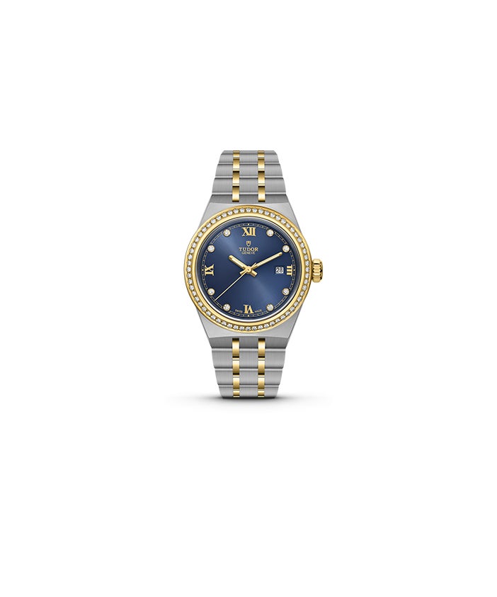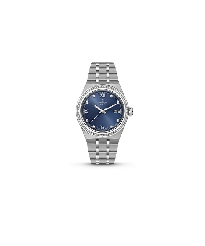 チューダー ロイヤルはスポーティかつエレガントな、ブランドのクラシックモデルだ。ケースと一体型のメタルブレスレット、特徴的なベゼル、そして自動巻きムーブメントを備え、スポーツシックの理想形と言える。 今回チューダーは、印象的なブルーダイアルをまとった新作をロイヤルコレクションに追加する。ひときわ目を惹くモデルを求める人に完璧な1本だ。さらに、ベゼルとダイアルにはダイヤモンドをあしらい、華やかな仕上がり。今こそ輝きを放つとき。