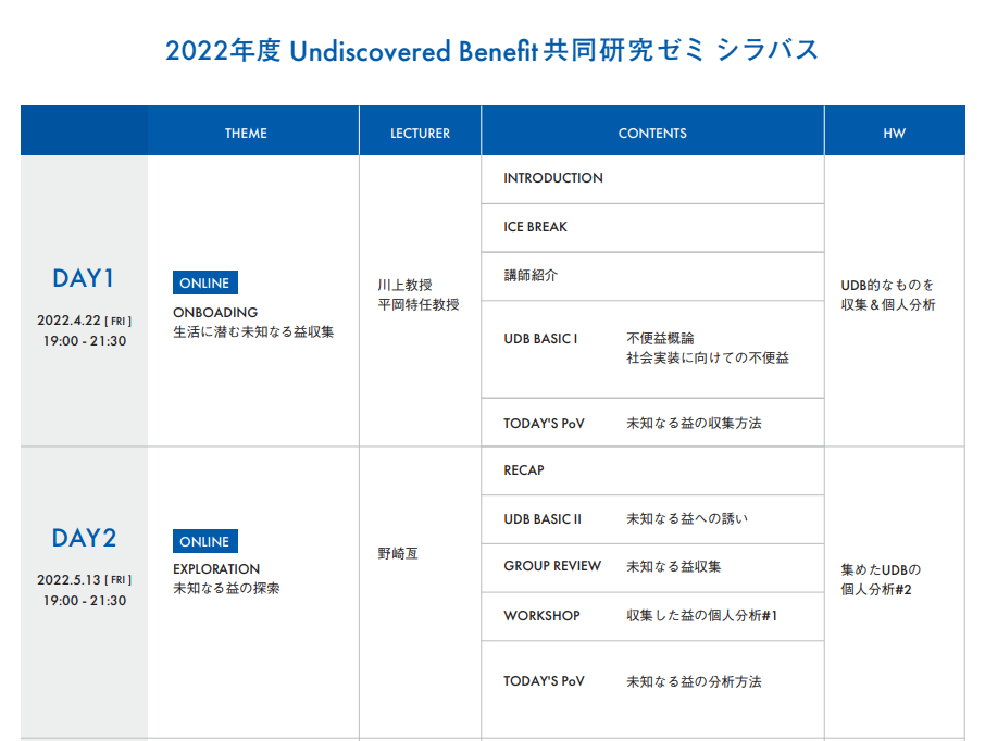 本研究会では、不便益研究の第一人者・川上浩司教授(京都先端科学大学)、平岡敏洋特任教授(東京大学)、スマイルズCCO野崎亙を主な講師として2022年4月より9月までの半年間、毎月1~2回の研究会を行います。「不便益概論」に始まり、未知なる益の収集・分析・構造化・実装化を経て、未知なる益「〇〇益」の輪郭を見出します。個人ワークをベースとしつつも、研究会では他の研究生とも議論をしながら進行します。