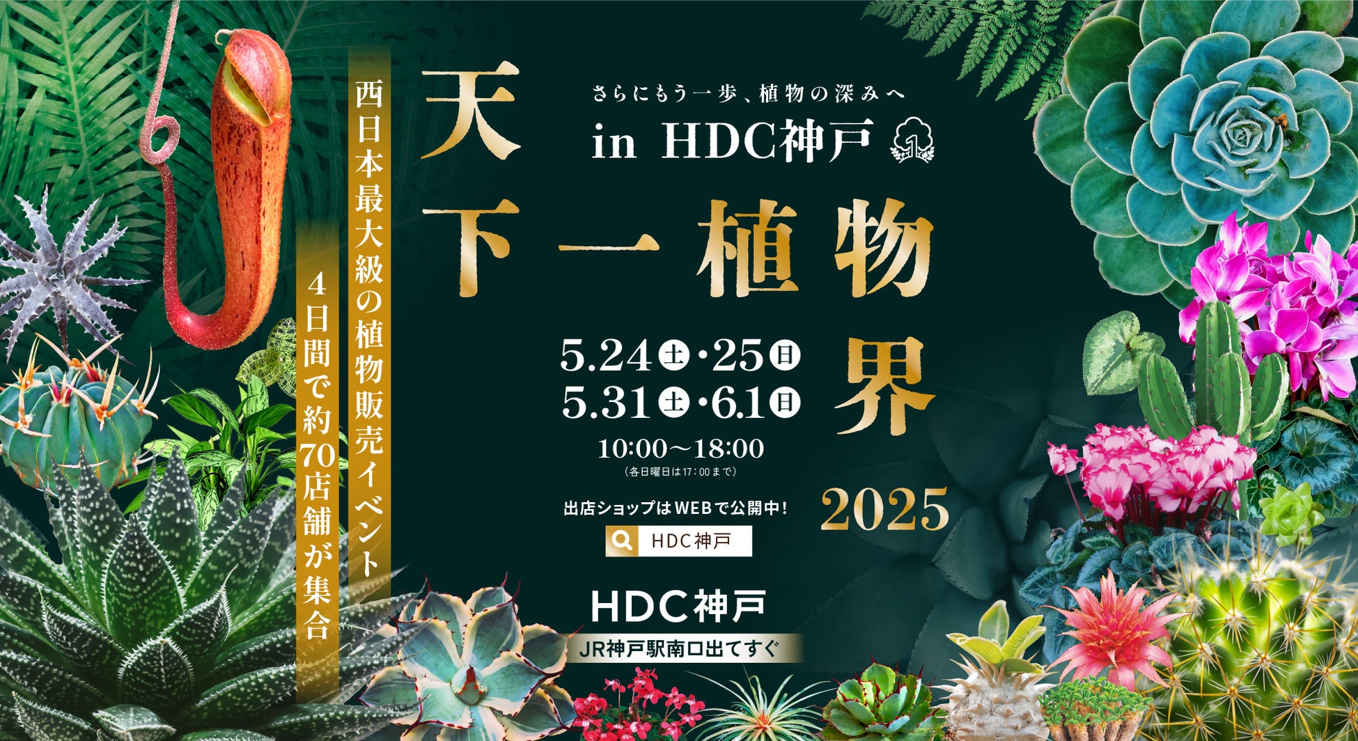 総勢約75店舗が出店する、関西最大級の植物イベント「天下一植物界」をJR神戸駅から徒歩すぐの「HDC(ハウジング・デザイン・センター)神戸」で開催いたします。