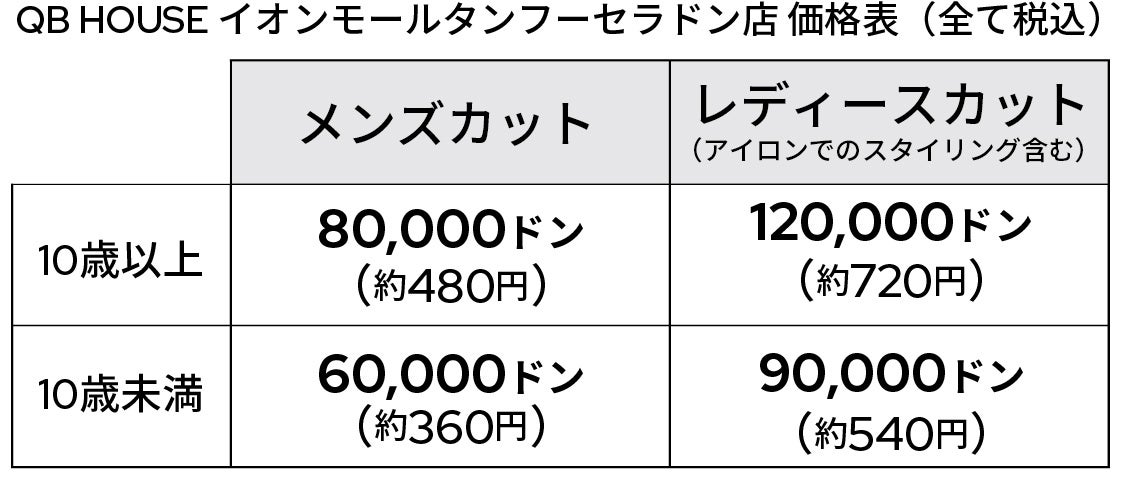 ▶QB HOUSE イオンモールタンフーセラドン店 概要