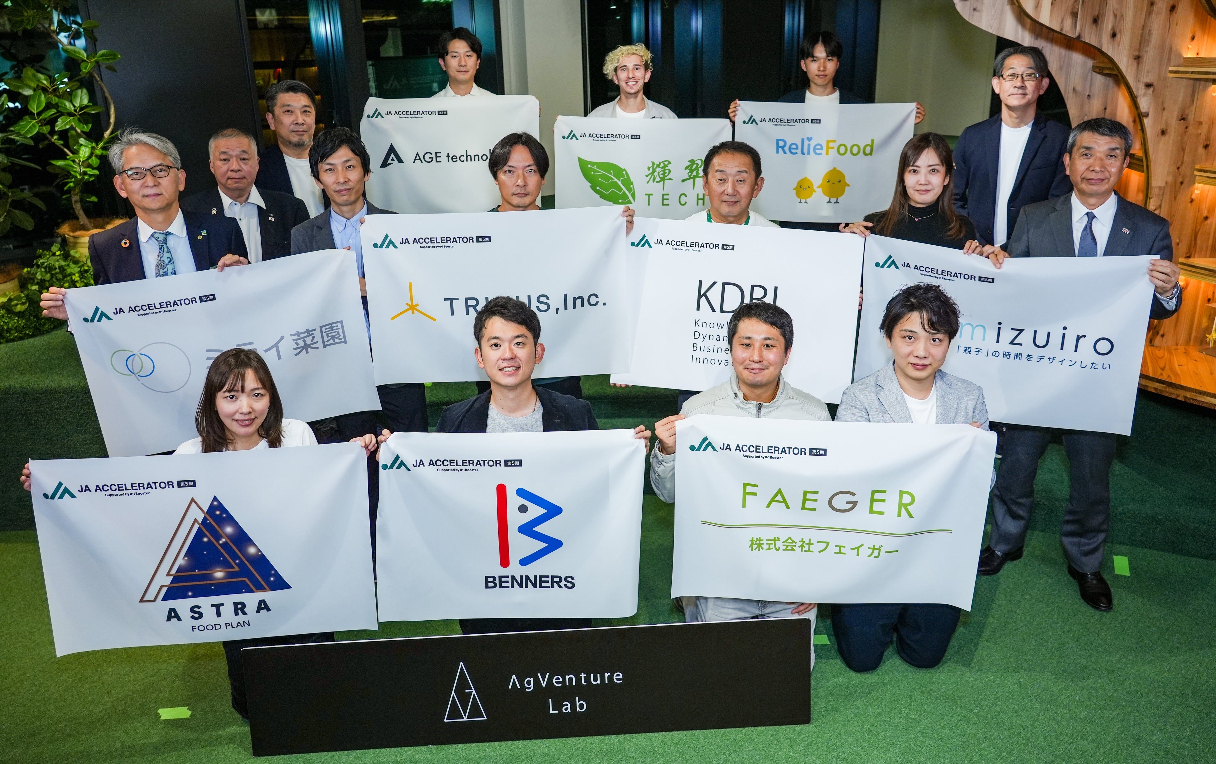 本プログラムでは、応募総数189件から採択されたスタートアップ10社が、約6か月間にわたり、全国農業協同組合連合会(JA全農)と農林中央金庫の職員による伴走を受けながら、JAグループのアセットやAgVenture Labの施設等を活用して、実証実験やビジネスプランのブラッシュアップを実施。DEMO DAY(成果発表会)では各社からその活動の成果が発表されました。