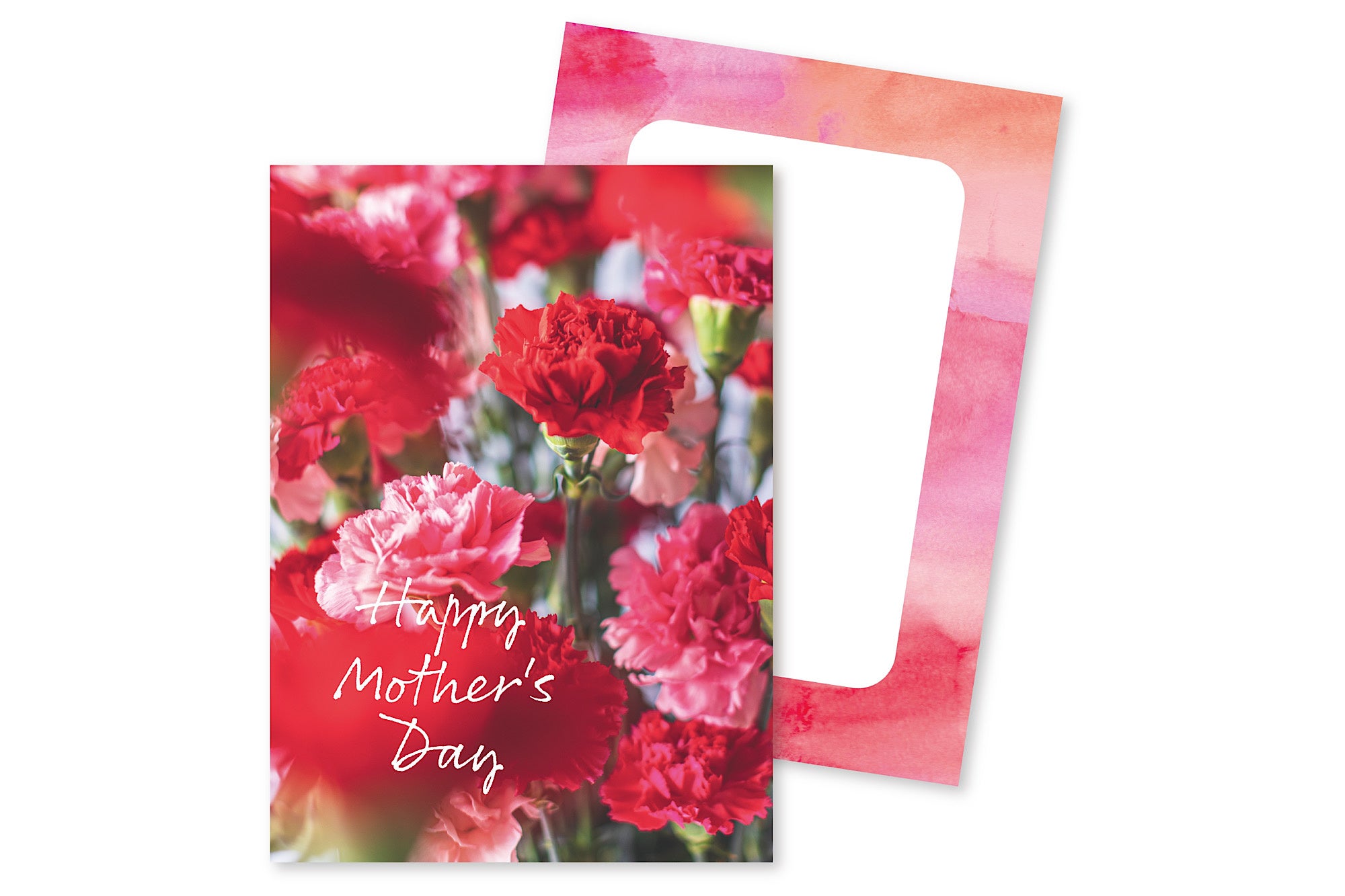 お母さんへの愛情をカーネーションの花で表現した【カーネーション】のものと、母の日を色でイメージし色合いを重ねた【ピンク】の2種類です。ぜひ、贈る相手のことを想いながら、「かけ紙」を選んでいただく時間もお楽しみいただけたら嬉しいです。また、母の日限定の「メッセージカード」もご用意しています。お母さんに日ごろの感謝の気持ちを伝える機会は意外と少ないもの。なかなか言葉にできない想いをこの機会に伝えてみるのも良いかもしれません。