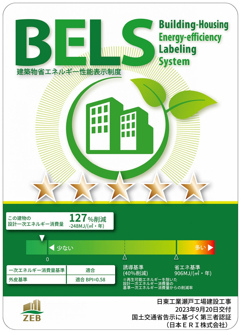 ※1 BELSとは、建築物省エネ法第7条に基づき建築物の省エネ性能を表示する第三者認証制度の1つで、一般社団法人 住宅性能評価・表示協会が運営しています。一次エネルギー消費量をもとに5段階の星マークで表示しています。