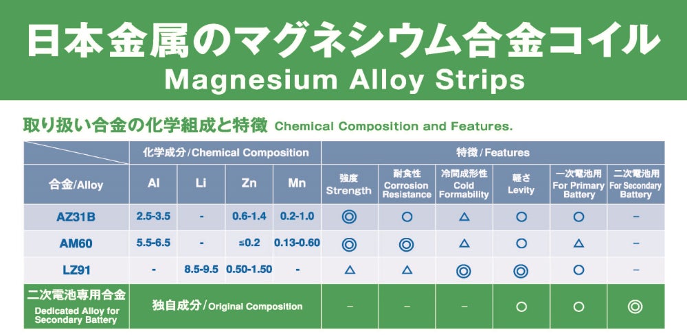 ※2 参考 リチウムイオンに代わる未来の電池 新開発「マグネシウム合金二次電池負極用新合金」 開発者向けに負極材サンプルの試験提供を開始(2020年12月15日付プレスリリース)
