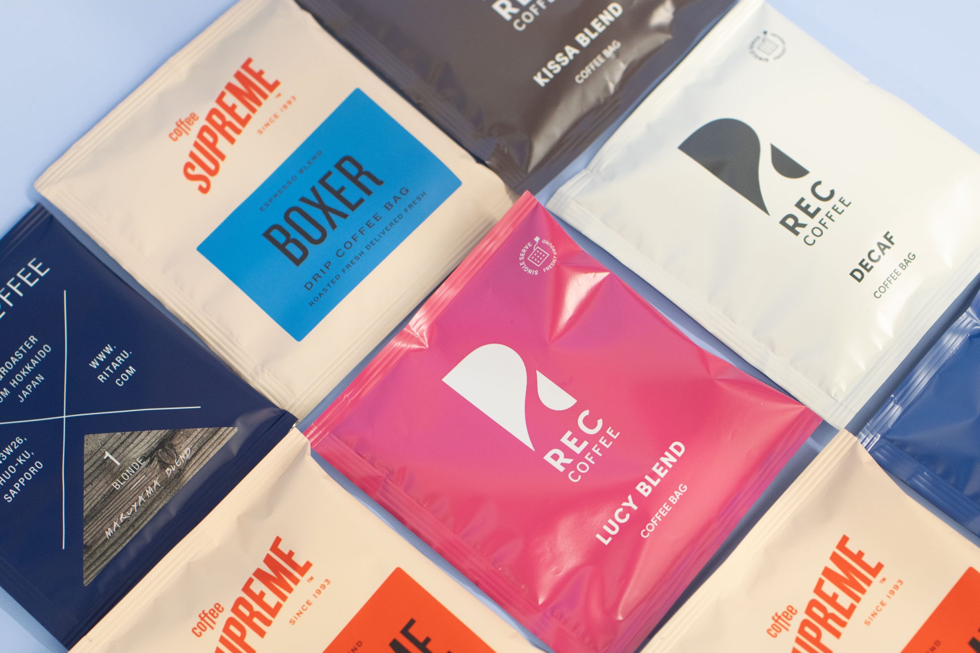 スタッフが厳選した選りすぐりのスペシャリティーコーヒーのドリップバッグを常時50~100種類程度販売。ドリップケトルを使って自分で淹れて楽しめるような仕様です。