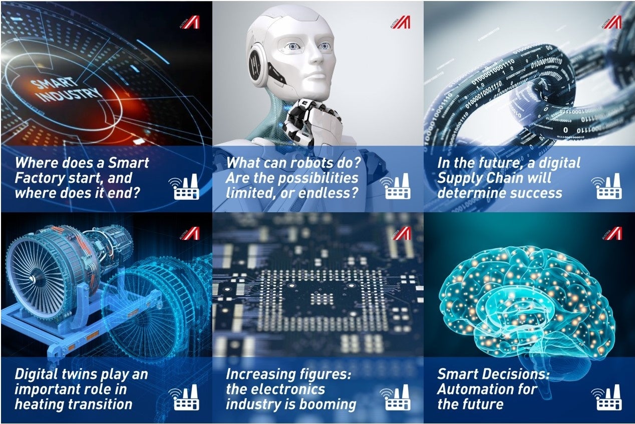 スマートファクトリー、ロボットテクノロジー、サイバーセキュリティー、サプライチェーン、デジタルツイン、エレクトロニクス、AIといった7つのテーマに沿って、最新情報とともに関係者へのインタビューをご紹介。