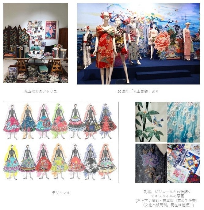 「ファッション」をテーマに、初公開となる1,000種類以上のテキスタイルの原画や、これまで丸山が丹精込めてデザインしたアート性の高い刺繍作品、そしてKEITAMARUYAMAを纏い、人生の物語を紡いだ方々からエピソードとともに寄せられた思い出の写真を一堂に展示いたします。