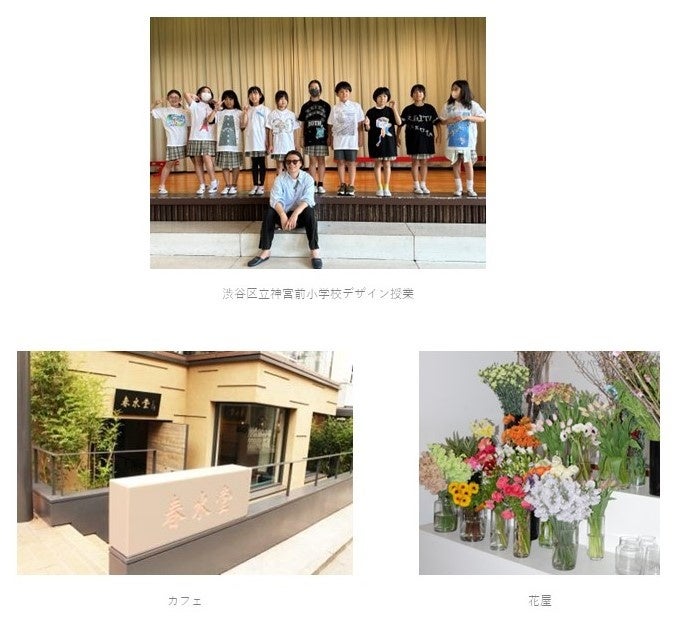 原宿の街とのコラボレーションでは、カフェ、クレープ屋、花屋やアートギャラリーなどジャンルを超えた協業を実現します。 また、生まれ育った街への恩返しをしたいと自身が学び育った母校・渋谷区立神宮前小学校でものづくりの授業を行う「渋谷区立神宮前小学校デザインプロジェクト」を実施しています。