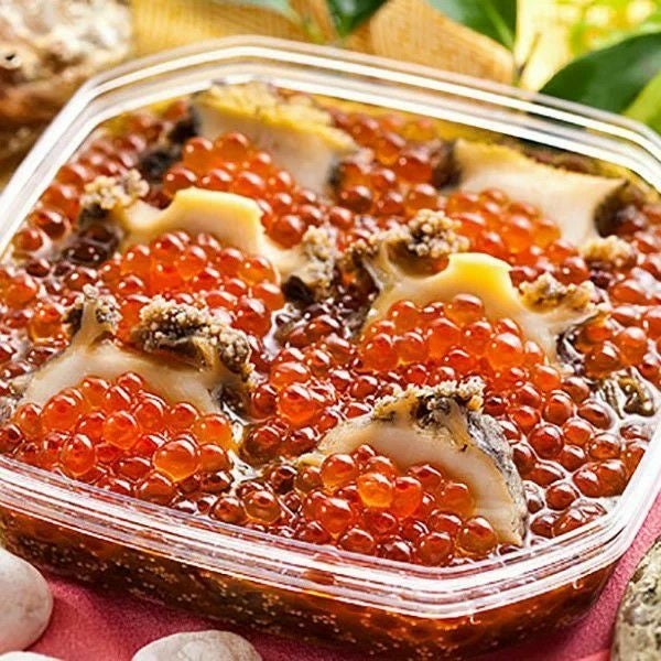 特製醤油で漬けた香り高いめかぶの上に、柔らかく煮た三陸産あわび、濃厚なイクラの醤油漬けをトッピング。同店の代名詞ともいえる人気商品だ。酒の肴はもちろん、ホカホカのご飯にのせて海鮮丼にしても贅沢。