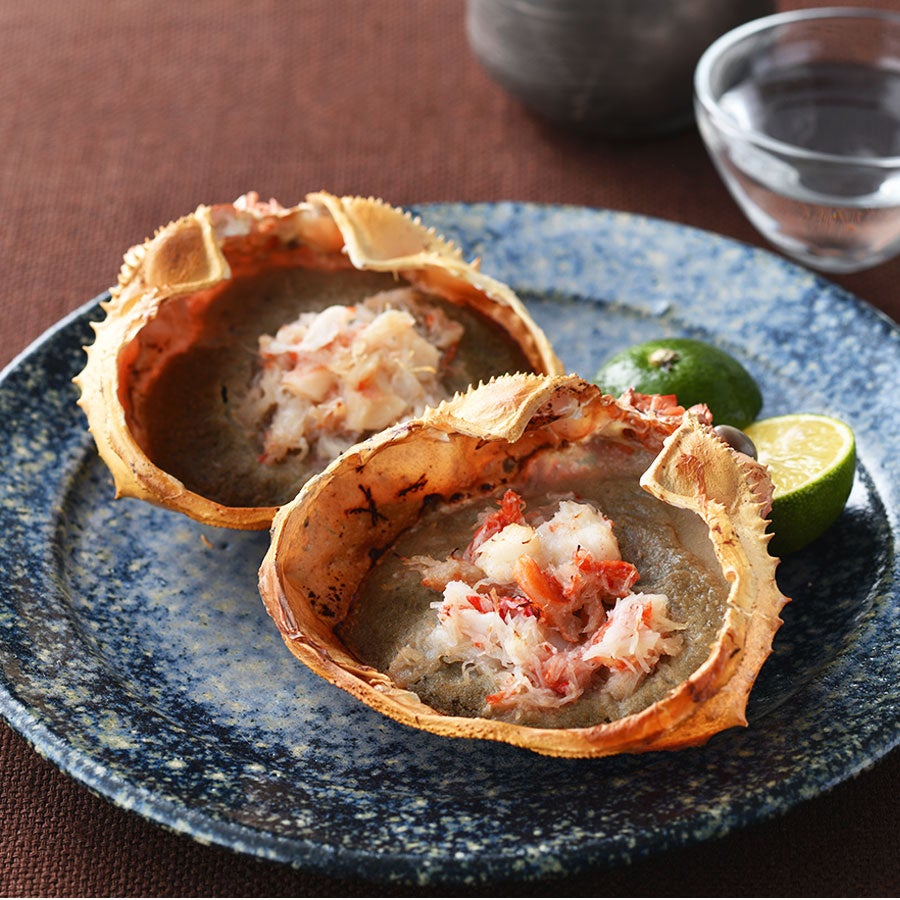 紅ズワイガニの甲羅の中に、本ズワイガニの身と約2尾分の紅ズワイガニのみそをたっぷりのせた、日本酒を呼ぶ一品。甲羅ごと温めると、身の甘み、みその濃厚なコクと風味がぐんと際立ち、なんとも味わい豊か。レンチン OK の手軽さと、華やかなビジュアルを併せ持ち、ギフトとしても優秀です。