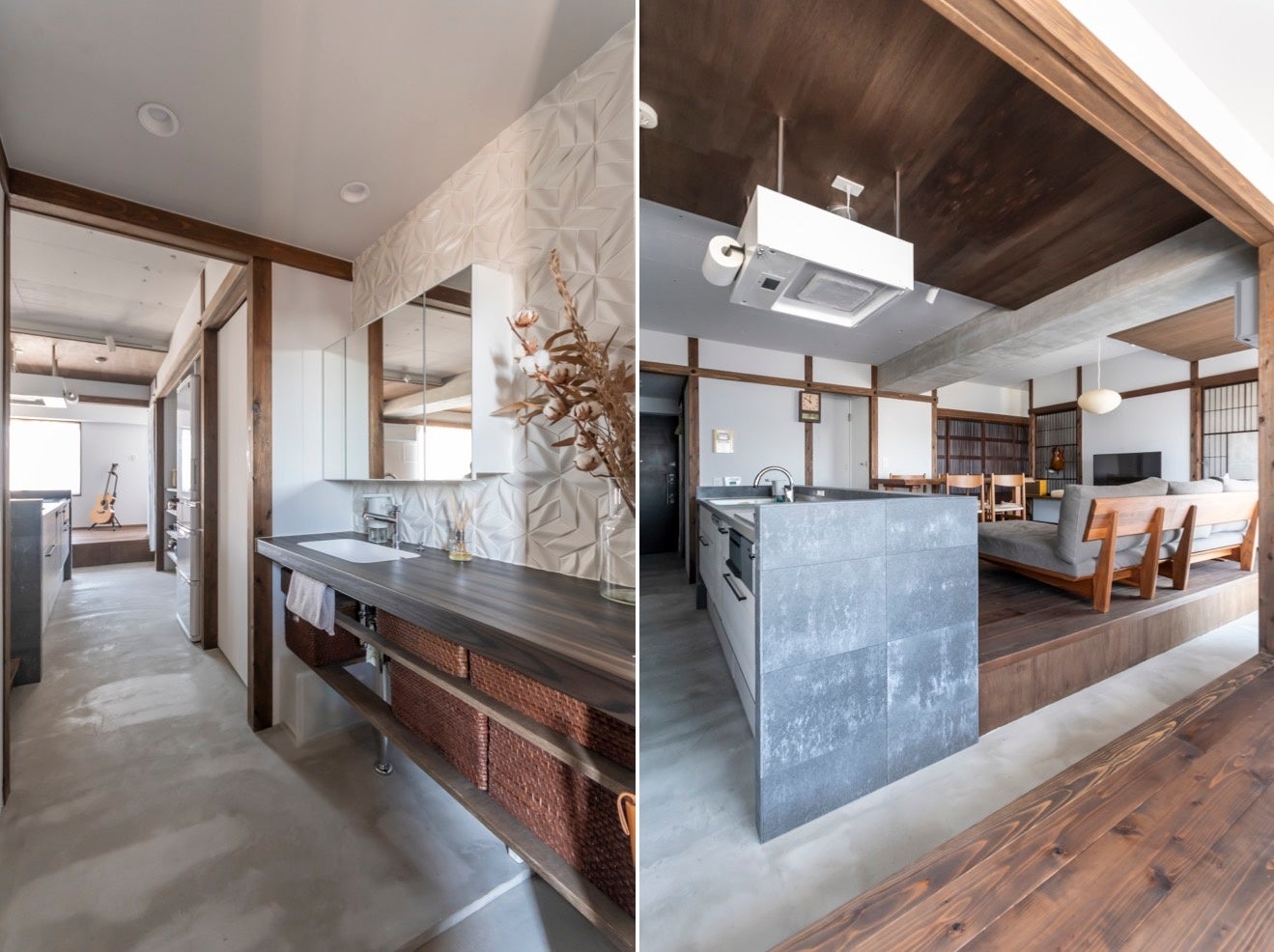 マンションの一室という制約の中、施主様の「お寺のように、心落ち着く空間で暮らしたい」「スムーズな動線で生活したい」という2つの異なる要望を、「一筆書きの土間」というダイナミックな操作でつなぎ、意匠面と機能面から暮らしの質を大きく向上させた点が評価されました。