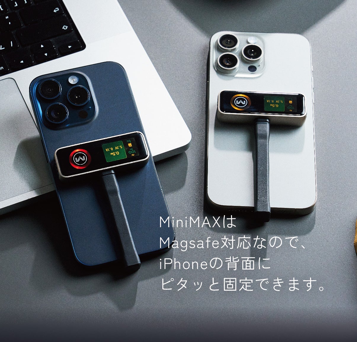MiniMAXは液晶ディスプレイを搭載、デバイスに接続すると自動でディスプレイが光ります。