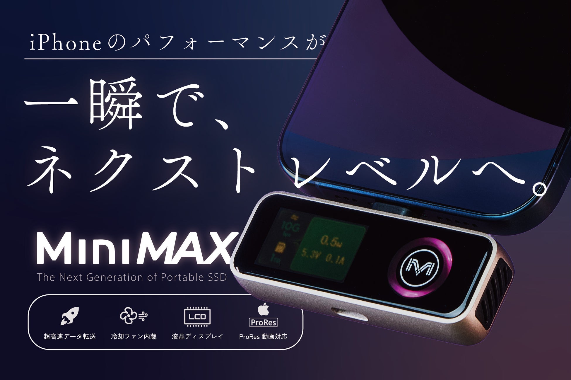 超コンパクト、大容量、超高速データ転送、ProRes動画の直接保存対応、熱暴走を防ぐ冷却ファン内蔵。スタイリッシュなポータブルSSD・Maktar「MiniMAX」クラウドファンディング開始!