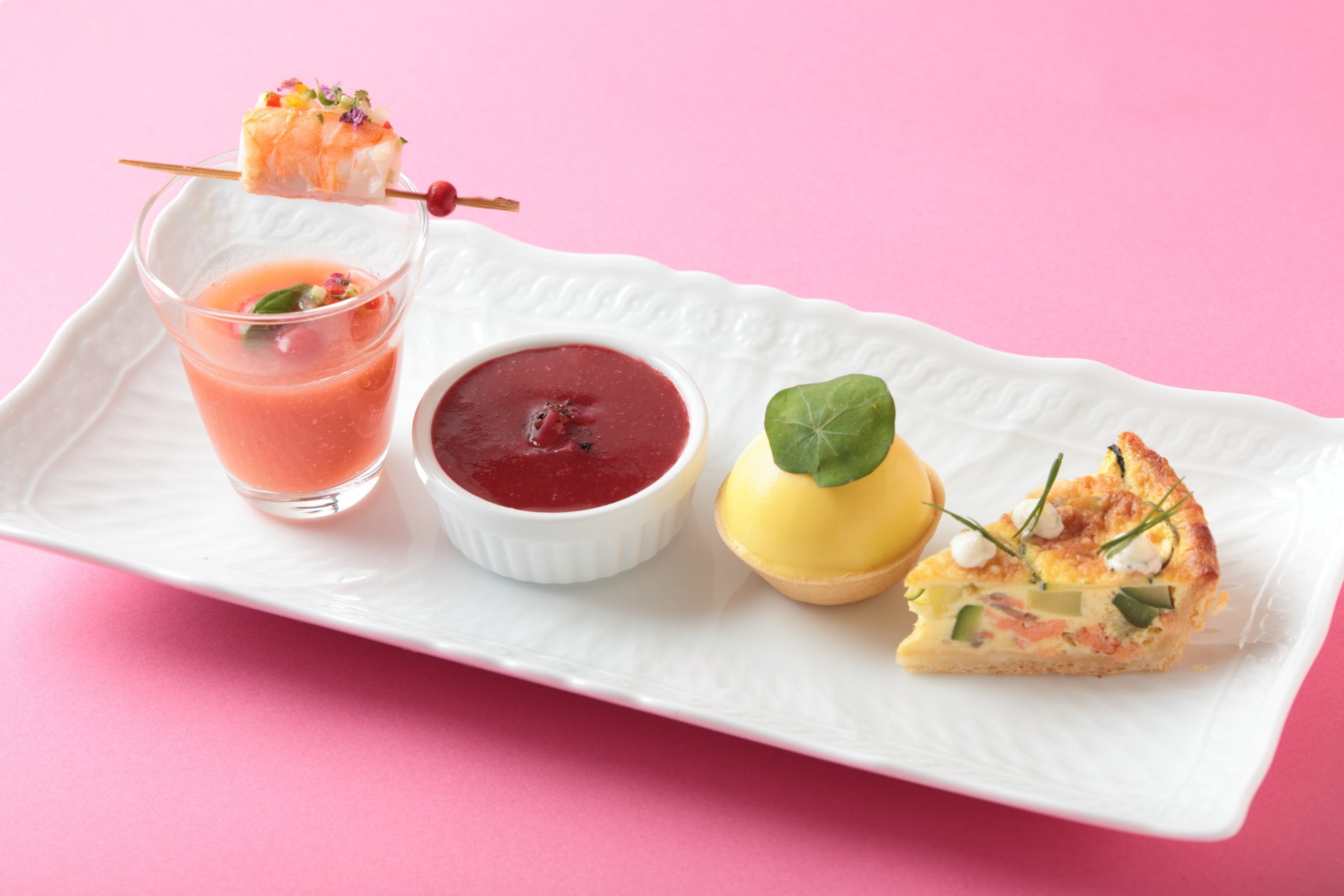 「フローズンピーチ」のウェルカムドリンクで爽やかに始まり、パンドラのジュエリーボックスから着想を得た「カシスとマダガスカル産バニラムース」や、ベリーの酸味と濃厚なチョコレートが絶妙に調和する「ラズベリーチョコレートタルト」など、見た目にも華やかなスイーツをご堪能いただけます。セイヴォリーには、軽やかな味わいの「とうもろこしのムースと生ハムのタルト」や、香ばしく焼き上げた「スモークサーモンとズッキーニのキッシュ」など、華やかで満足感のあるラインナップを揃えています。