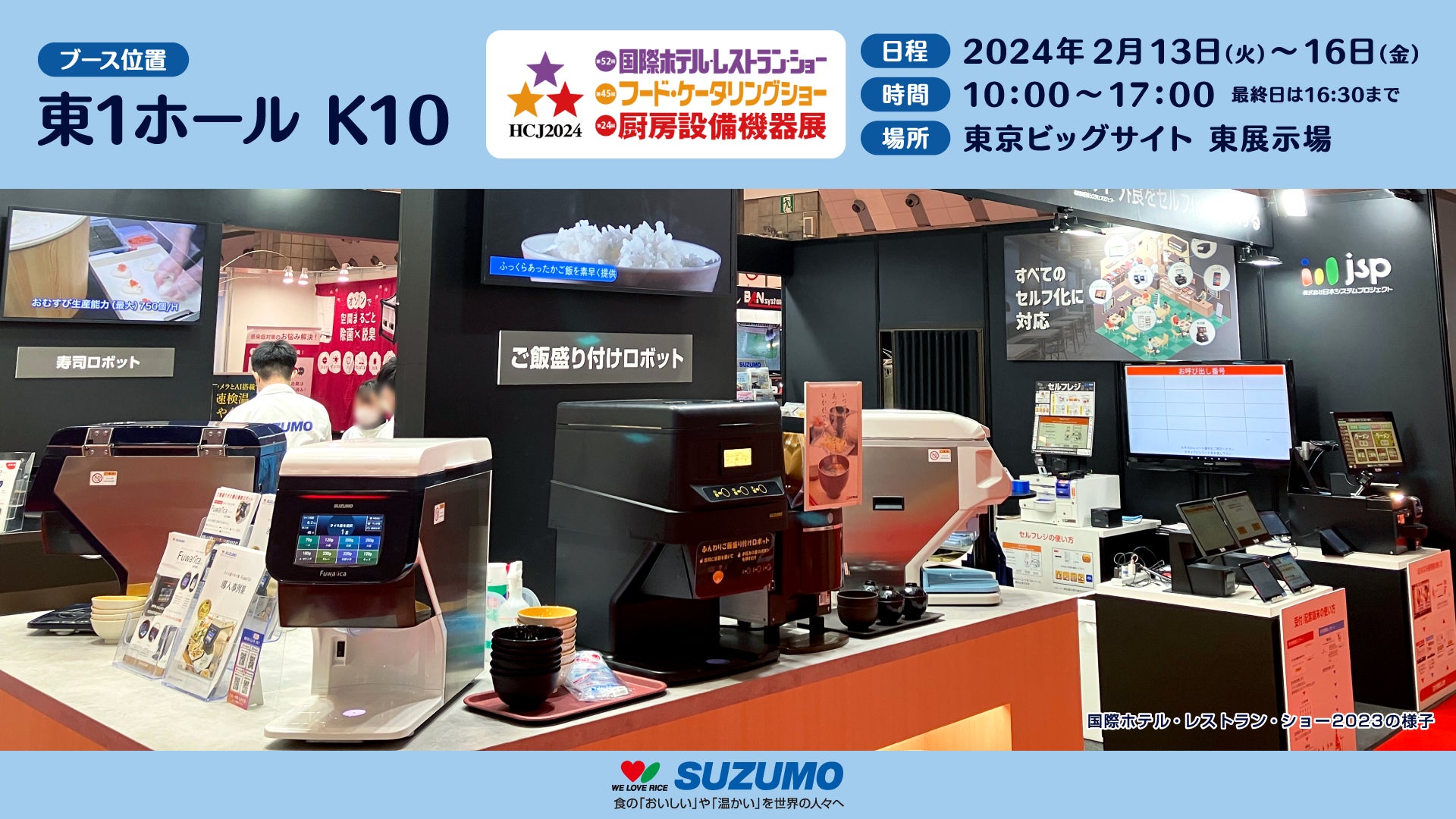昨年も、本展示会を通じて、多くの外食・宿泊・レジャー業界の皆さまに、当社製品を活用したオペレーションの改善や人手不足対策の可能性を感じていただけました。今回は、ホテレスショーには初展示となる、寿司ロボット(コンパクトシャリ玉ロボット)の最新機種や、鈴茂器工と日本システムプロジェクトのグループシナジーの成果となる新製品/サービス(配席システム)を展示予定です。