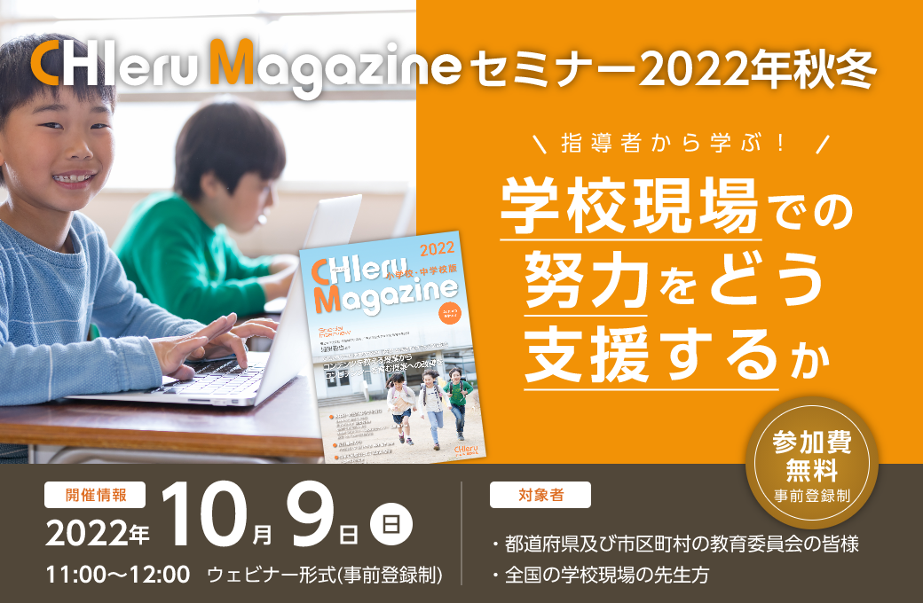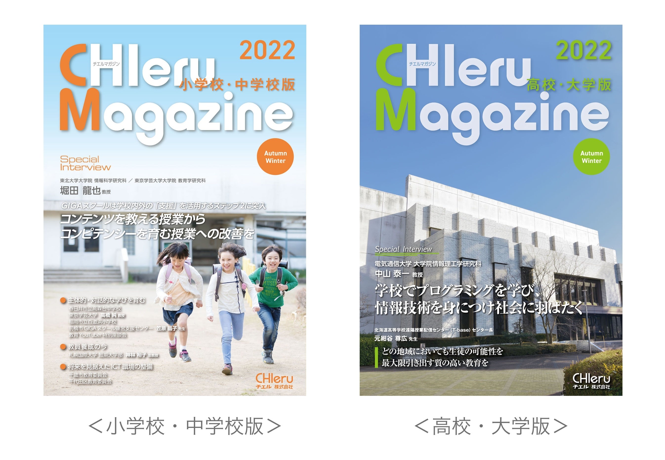 学校教育向けのICT利活用を支援する、チエル株式会社(本社:東京都品川区、代表取締役社長:粟田 輝)は、2022年10月3日(月)に“学校教育現場のICT活性化マガジン”としてご好評いただいている『CHIeru Magazine(チエルマガジン)』2022年秋冬号を刊行します。これまで同様、全国の教員や学校関係者を対象に無料で配布いたします。併せて、誌面にご登場いただいた先生方を招き、掲載事例をさらに深掘りするオンラインセミナー『チエルマガジンセミナー2022秋冬』を開催いたします。