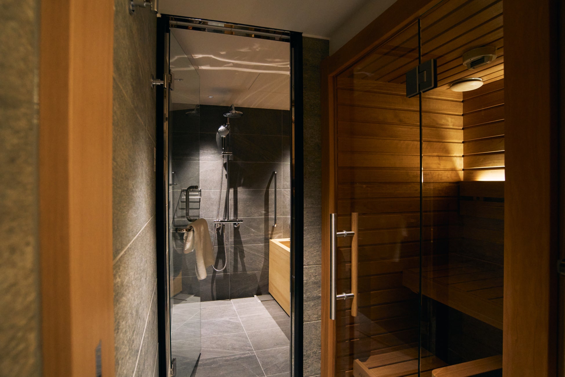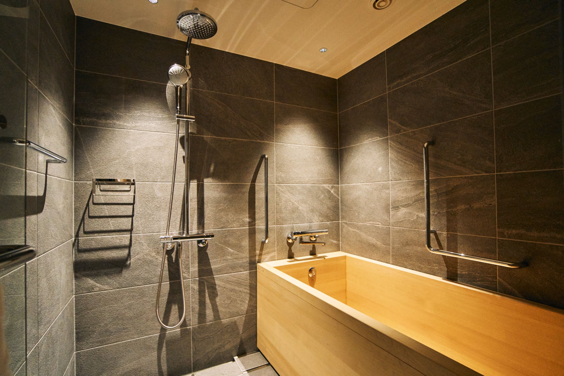 本客室では、サウナのすぐ横にひのき風呂とシャワーが設置されているため、サウナを満喫するための動線もスムーズです。