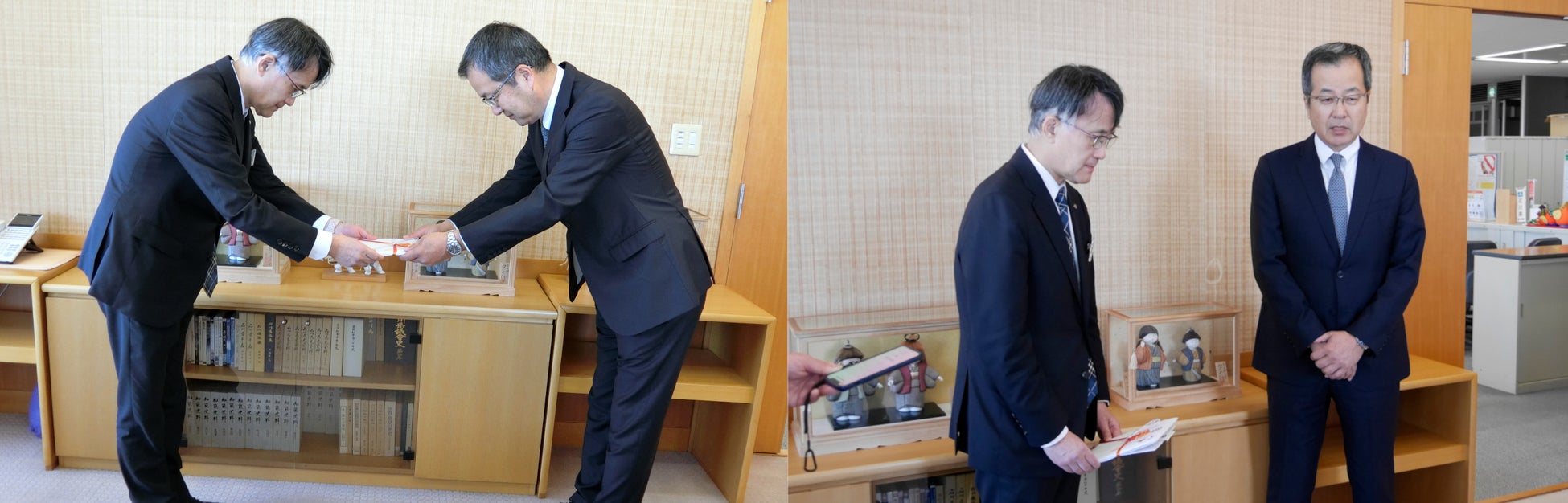 今回は、被災された皆様を支援するため、1月13日(土)~2月9日(金)の全てのアライオークション開催において、成約1台につき400円のチャリティーと各会場にて募金活動を実施いたしました。 このたび3月21日には、石川県東京事務所に訪問し義援金贈呈式が行われ、荒井商事 取締役 オークションカンパニー長 東馬圭一から、 石川県東京事務所長 中谷安孝様へ義援金を贈呈させて頂きました。