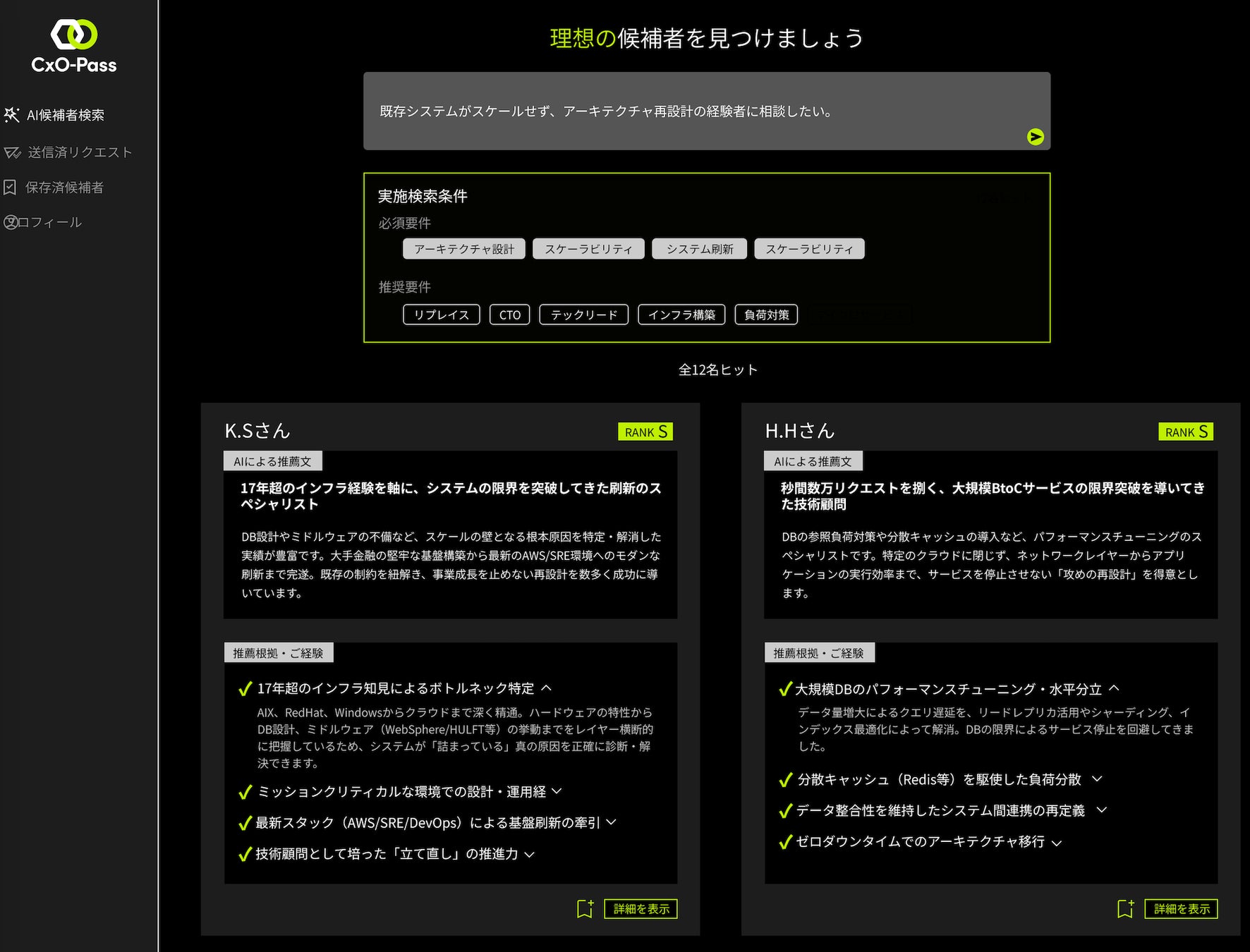 株式会社StartPass(本社:東京都新宿区/代表取締役CEO:小原聖誉)は、アクシスコンサルティング株式会社(本社:東京都千代田区/代表取締役社長 COO:伊藤文隆)と共同で提供する、スタートアップとCxO人材をつなぐマッチングサービス『CxO-Pass』において、登録CxO候補者が1,000人を超えたことを受け、CxO-Passを使いこなすための機能として、AIで「自然言語検索」および「依頼文作成」を支援する『CxO-Pass DB』の事前登録を開始しました。