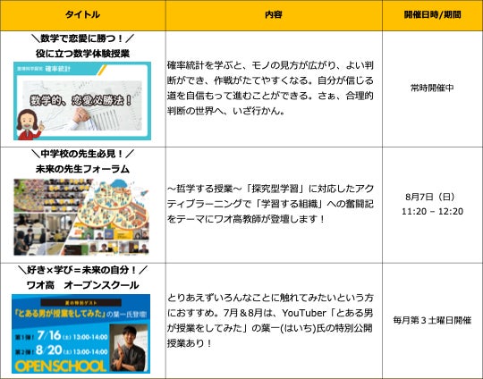 この夏 \フツーの勉強じゃ物足りない/中・高校生 集まれ! 「ワオ高 夏の学育フェス 2022」 オンラインで初開催!