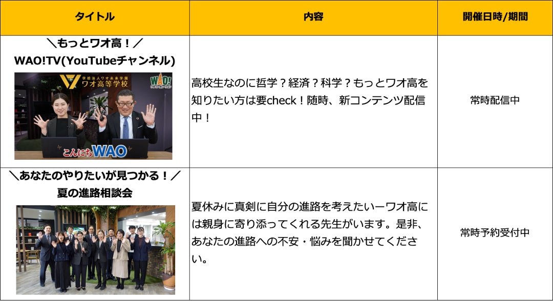 「ワオ高 夏の学育フェス 2022 」プログラム一覧
