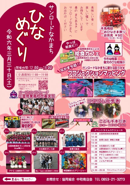 令和6年3月30日(土) 、島根県出雲市今市町(サンロードなかまち)で「サンロードなかまち ひなめぐり」が開催されます。