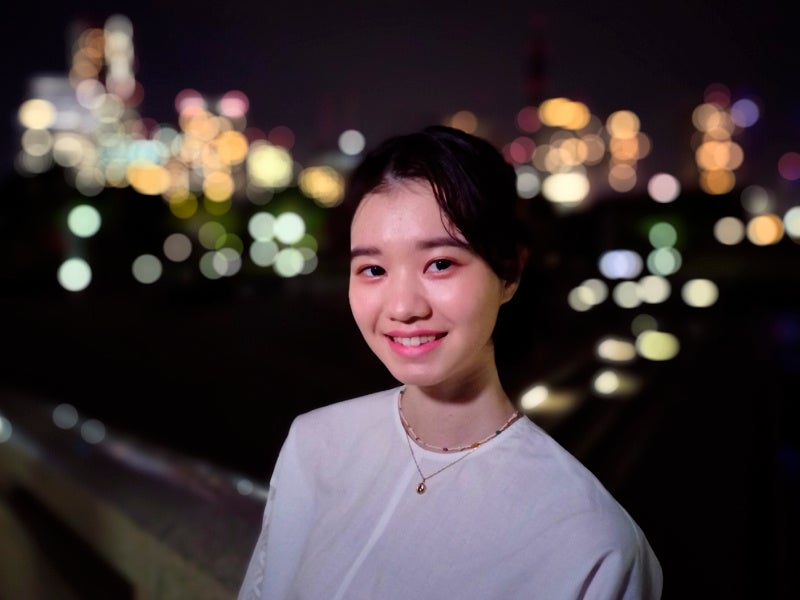 ネオンポートレート:夜景やイルミネーションなど、背景の街明かりを「玉ボケ」させ、被写体の表情を最適な明るさで際立たせるOPPO独自の機能です。
