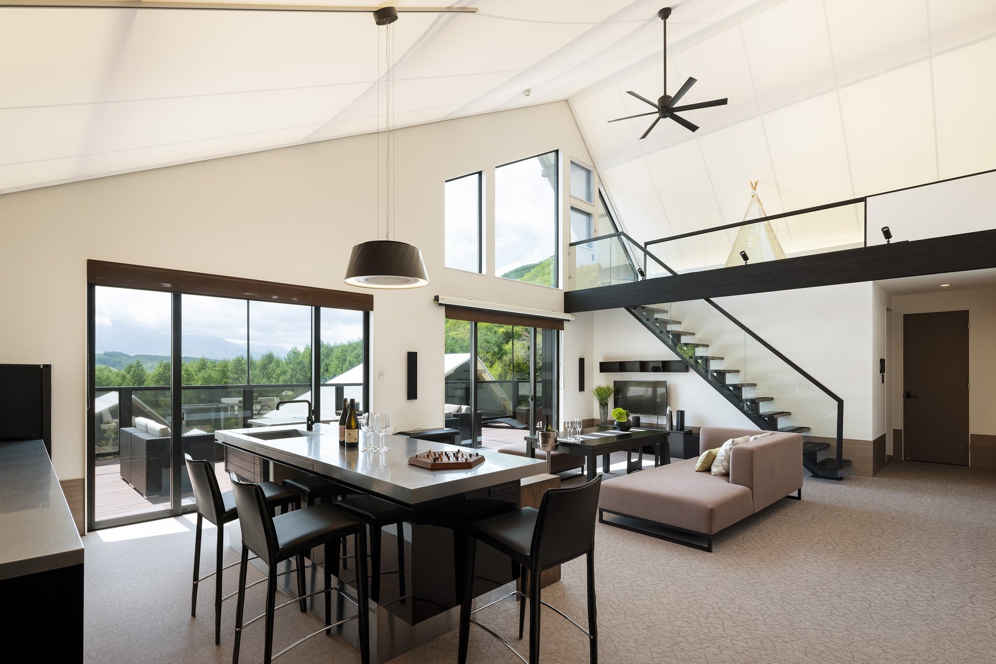 世界的デザイナー・コシノジュンコ氏の監修により誕生した「あさま空山望」は、北軽井沢の大自然の中に佇む一棟貸しヴィラリゾートです。60,000㎡を超える広大な敷地には、全16棟の宿泊ヴィラやレストラン「天空柁イニング」、温浴施設「天空スパ」、ラウンジ、ドッグランを贅沢に配置。全棟からは雄大な”浅間山ビュー”の絶景を一望でき、大自然に溶け込んだグランピングのような空間で愛犬も一緒に非日常を堪能いただけます。まるで別荘を訪れたかのようなプライベートなひと時をお過ごしください。