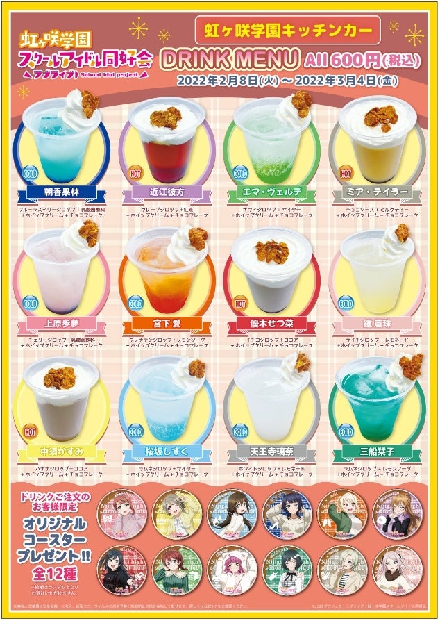 冬私服を着たニジガクメンバーイメージの限定ドリンクが登場!全12種類のオリジナルコースターをコレクションしよう★