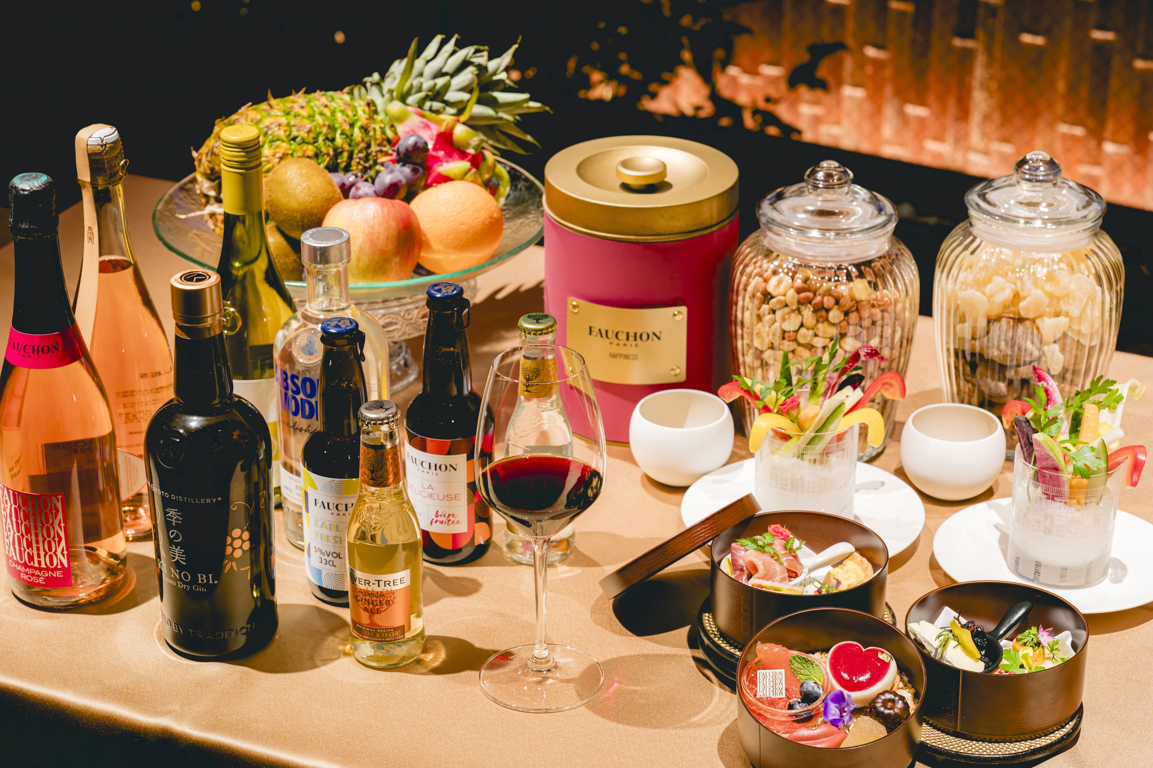 2023年秋よりスタートした、フォションホテル京都での宿泊者限定の新たな滞在のかたち。夕方より2階ティーサロン「サロン ド テ フォション」がエグゼクティブラウンジに姿を変え、エグゼクティブラウンジとしてさまざまなアルコールドリンクやスナックをご用意。かわいらしい3段のお重で提供される軽食など、グルメホテルでのエクスクルーシヴな体験をお楽しみいただけます。