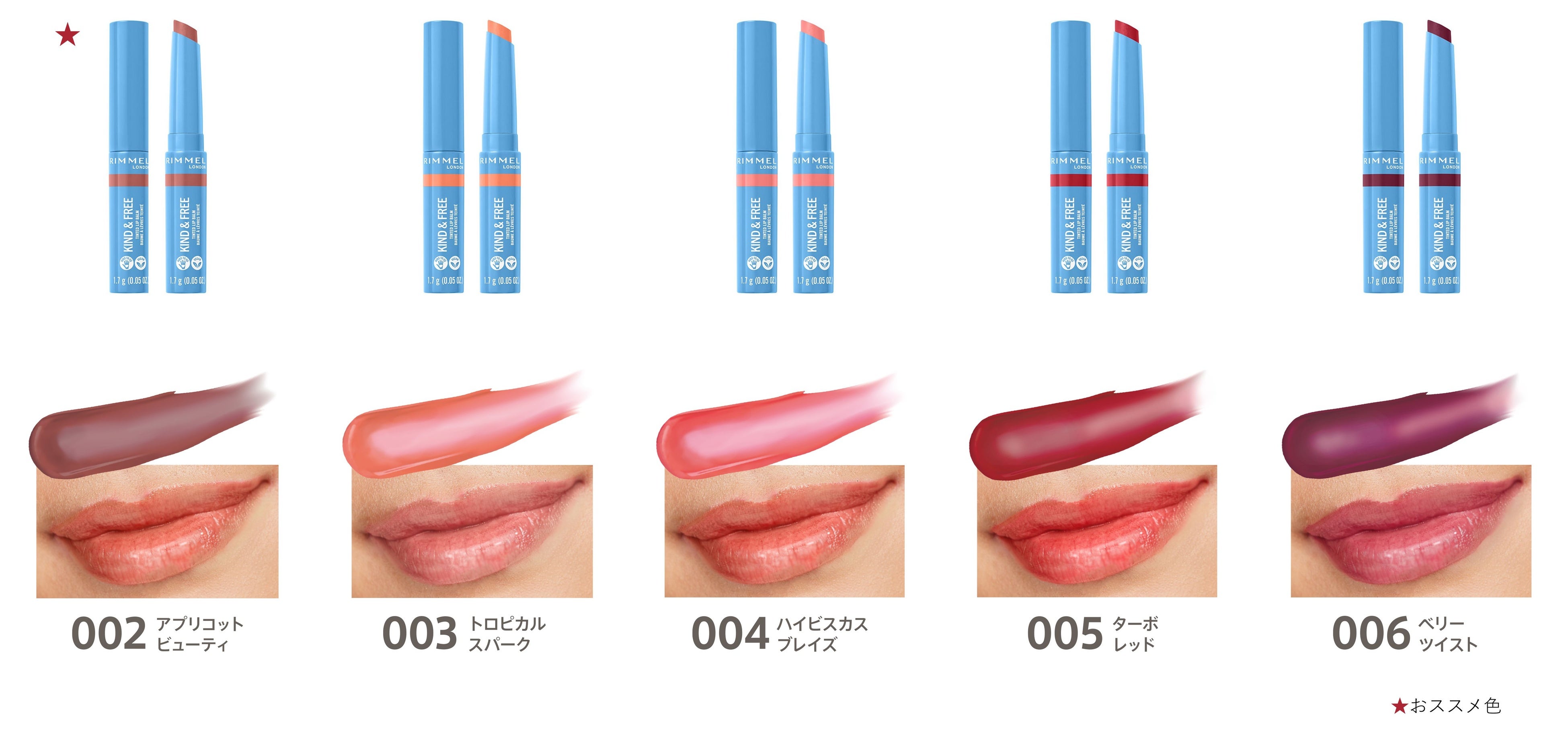 5色のジューシーな透け感カラーが、ナチュラルで血色感*3のある唇に♥さらに、保湿成分*4を贅沢に配合し、うるおいあふれる唇が続きます。