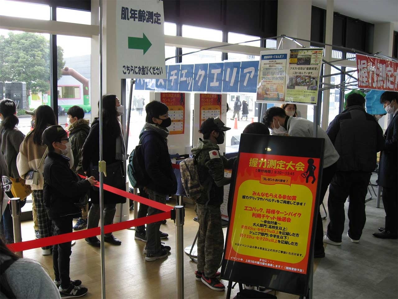 当社では健康経営の一環として、健康増進と社内コミュニケーション創出を目的とした取り組みに注力しています。社内に設けたトレーニングジムスペースには、終業後に幅広い年代の従業員が集まり、飲み会に代わる新たなコミュニケーションの場として活用されています。また、従業員とその家族を対象とした運動会開催、スポーツインストラクターによるストレッチのオンラインセミナー、従業員間で歩数を競うウォーキングイベントなども定期的に開催しております。当社主催のイベントでは、ご来場の方を対象に握力測定大会を実施し、地域の方などへ運動機会のきっかけ作りも行っております。