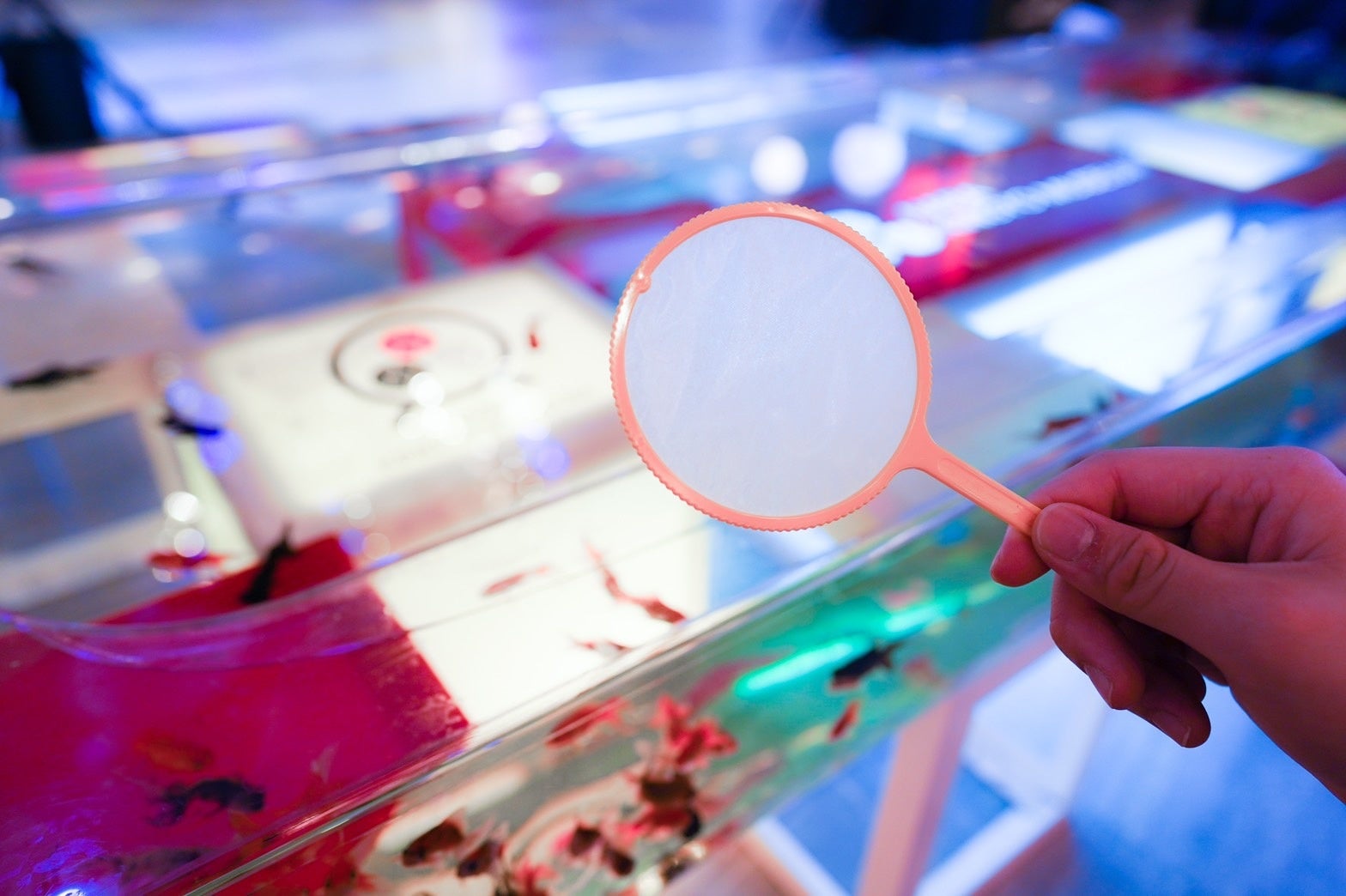 新型コロナウイルス感染症拡大の影響により夏祭りの開催が減少する中、少しでも訪れたお客様に夏の訪れを感じてほしいという願いから、夏らしい3つの展示「丸もの金魚すくい」「なぞとき願い事ラリー」「上見金魚博覧会」の開催を決定しました。