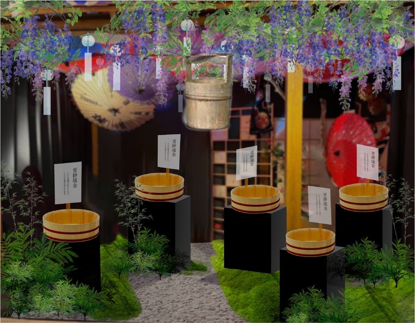 また、金魚の三大産地、大和郡山市の養殖場「やまと錦魚園」提供の、昭和 30 年代に実際に金魚を運ぶために使用していた丸桶を使用し、金魚の歴史と夏の風情を感じていただくことができます。