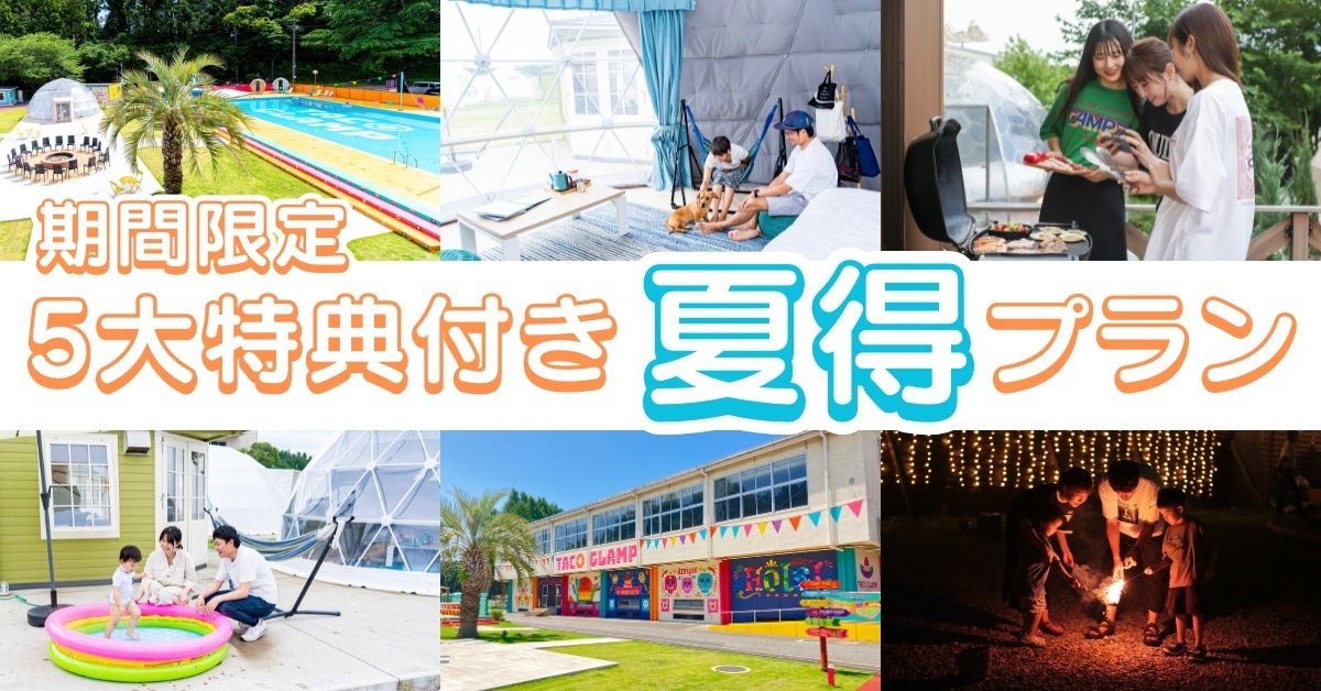 株式会社HAMIRU(所在地:千葉県市川市、代表:熊崎紗弥佳)が運営するグランピング施設「那須ハミルの森(栃木県)」「高滝湖グランピングリゾート(千葉県)」「TACO GLAMP(千葉県)」の3施設では、2025年夏シーズンに向けた特別宿泊プラン「期間限定 5大特典付き!夏得プラン」の販売を開始いたしました。