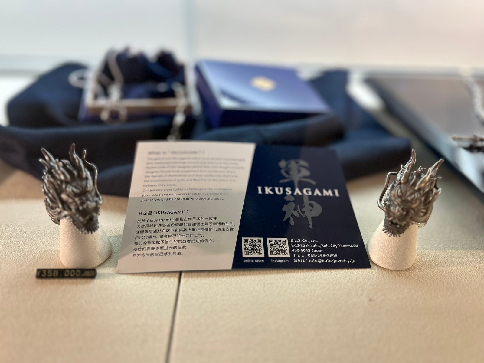 IKUSAGAMIは、日本の戦国文化と現代ファッションを融合し、困難を乗り越える「圧倒的個性」を提供するブランド。甲府の伝統宝飾加工技術で作られた最高品質のシルバージュエリーは、幸運と勝利を象徴し世代を超えて受け継がれます。