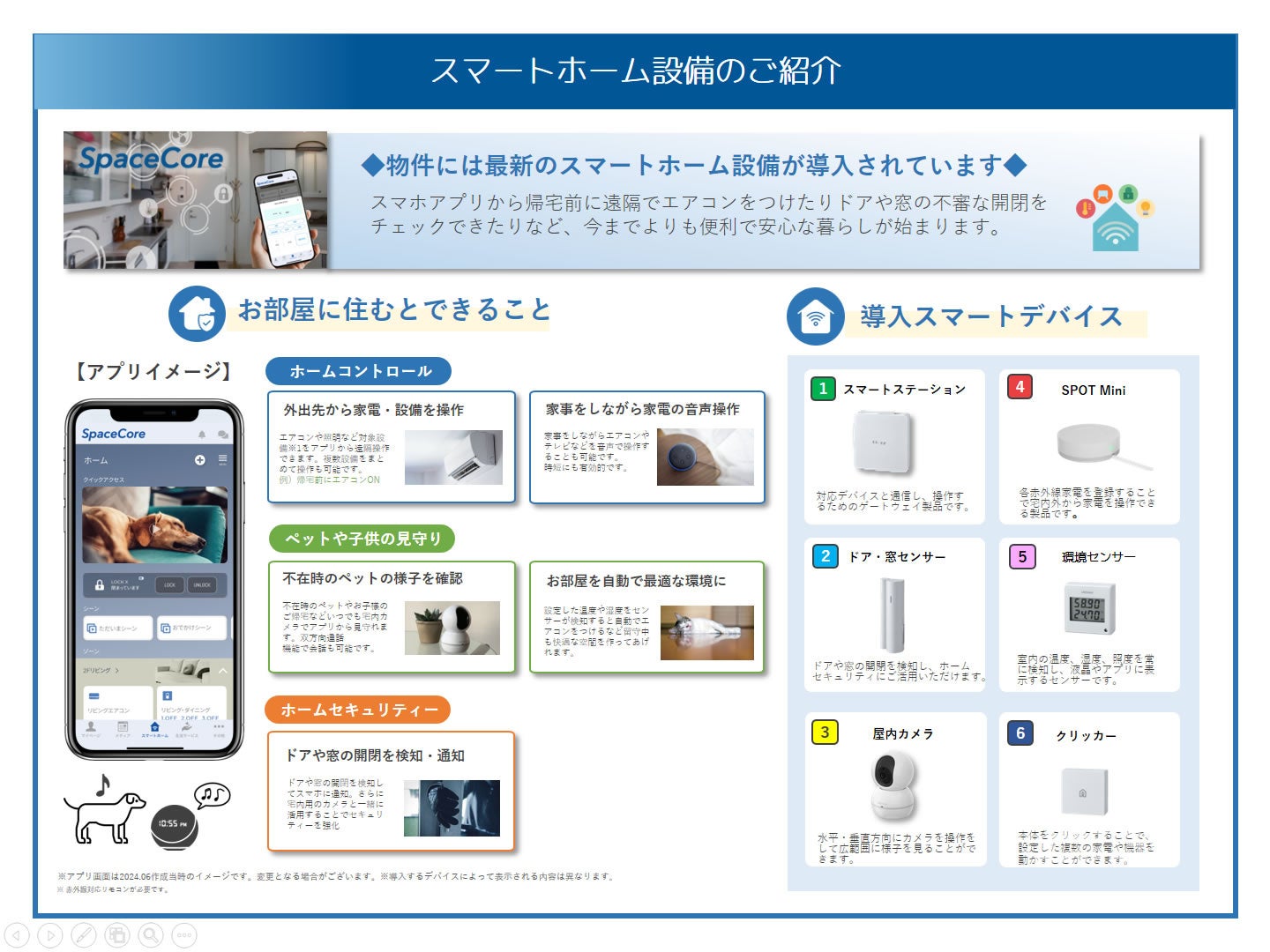 さらに、生活の利便性を向上させるために、棟別にWi-Fiを完備し、Webカメラやスマートスピーカー、温度センサー、窓割れセンサーなどのIoT(Internet of Things)連動機器を導入しています。これにより、セキュリティーの強化やネットワークの充実が図られ、効率性や利便性が向上し、スマートホームの実現に寄与しています。