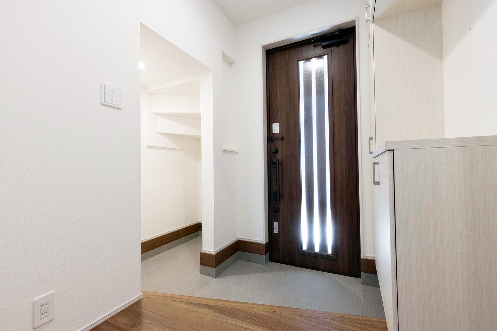 4棟全体を一つの生活空間と考え、賃貸ならではの自由な動線や配置設計と当社が持つ分譲住宅設計ノウハウを存分に活用し、様々なスペース利用方法をメインに検討しました。玄関前を広く取り、機能的な空間を作り活用することで、住む人々の利便性を高められるようにしました。例えば、ショッピング帰りにベビーカーの一時置きスペースとして利用でき、ゆったりと荷物の出し入れができるように設計を行いました。