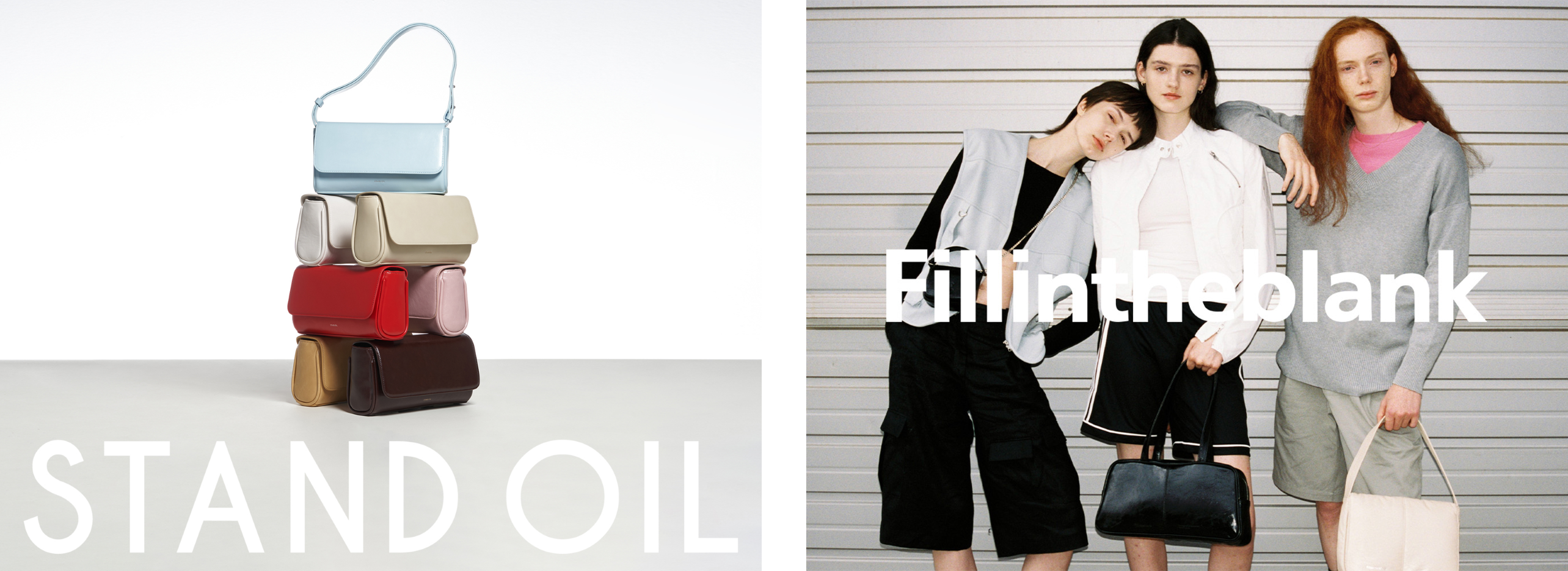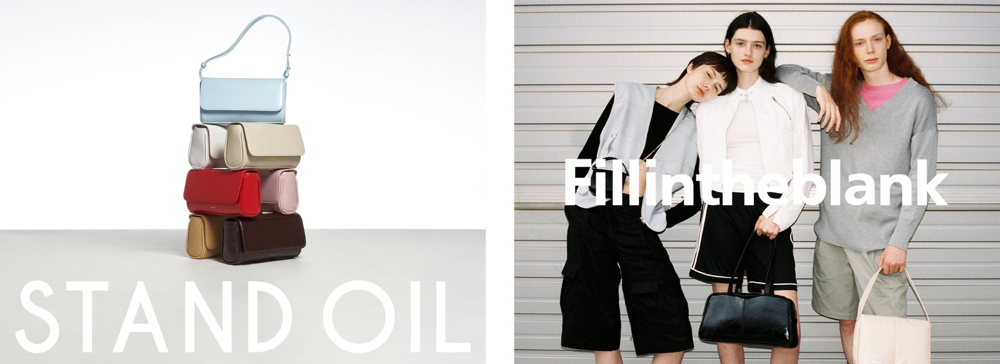 韓国で⼤⼈気のバッグブランド、STAND OIL(スタンド オイル)とFILLINTHEBLANK(フィルインザブランク)も、本国に劣らないカラーバリエーションで取り揃え、計11の韓国ブランドが秋冬の新作コレクションを展開する。