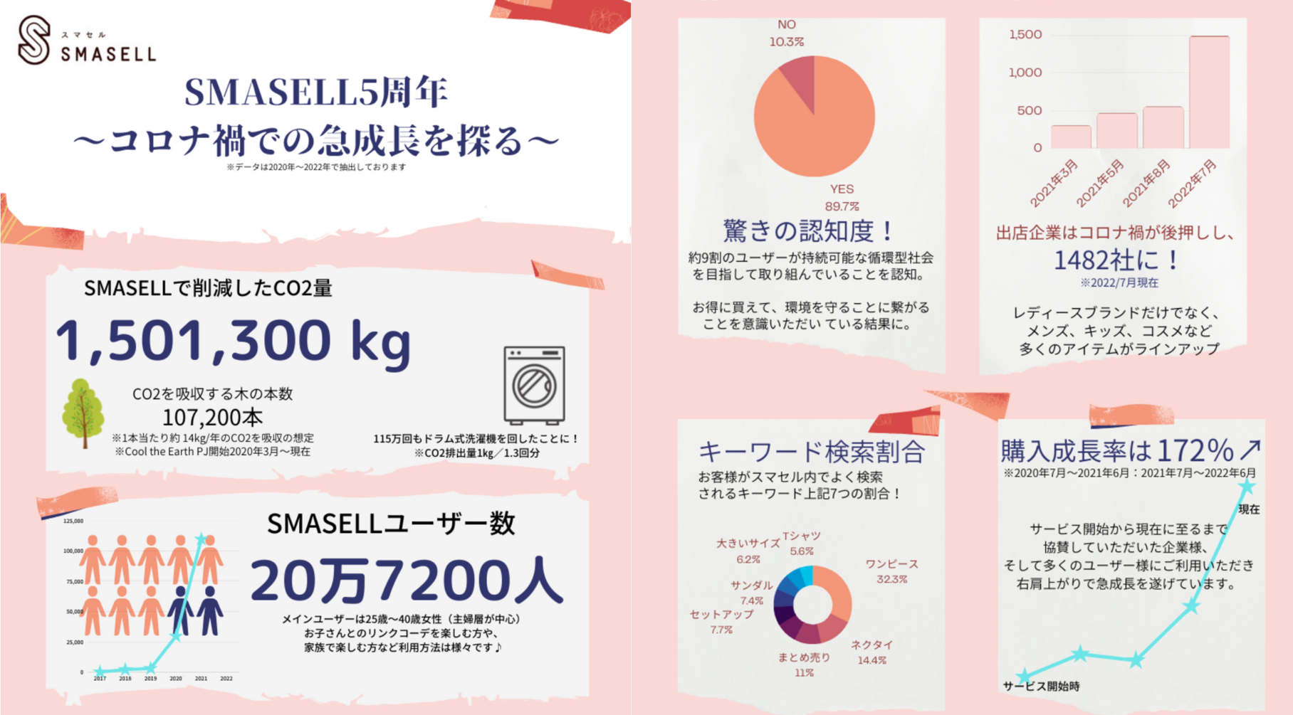合わせて、サービス展開5周年のあゆみを振り返る「SMASELL サービス開始5周年インフォグラフィックス」を公開しましたのでお知らせいたします。