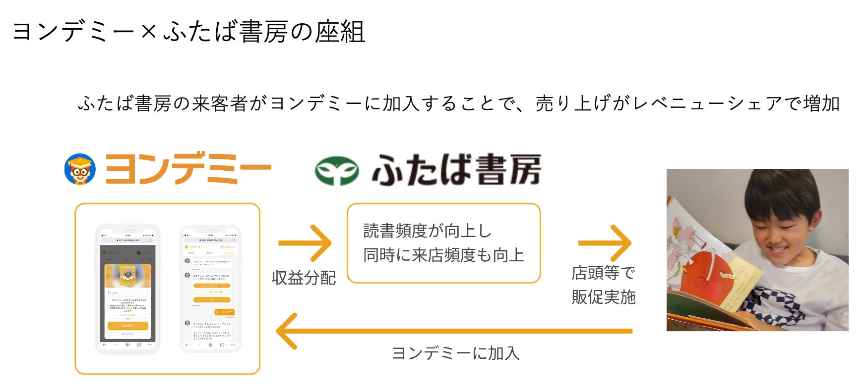 このような状況を踏まえ、Yondemyとふたば書房は、子どもたちの読書文化を育む取り組みを通じて、書店業界の新たな顧客層の獲得と収益化を目指します。